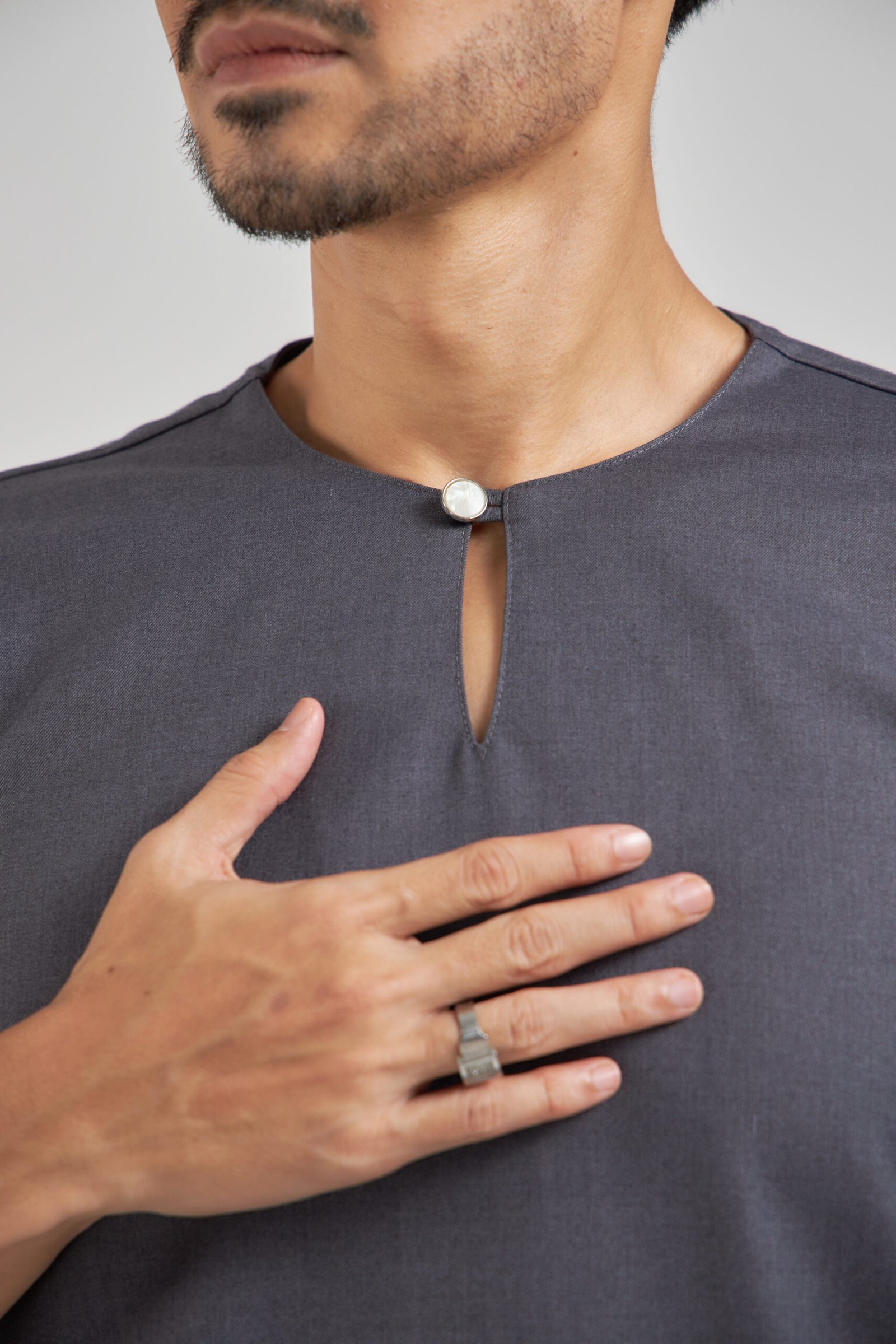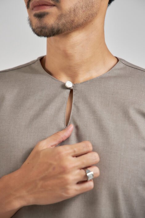 • Minimalist collar design with pearl button