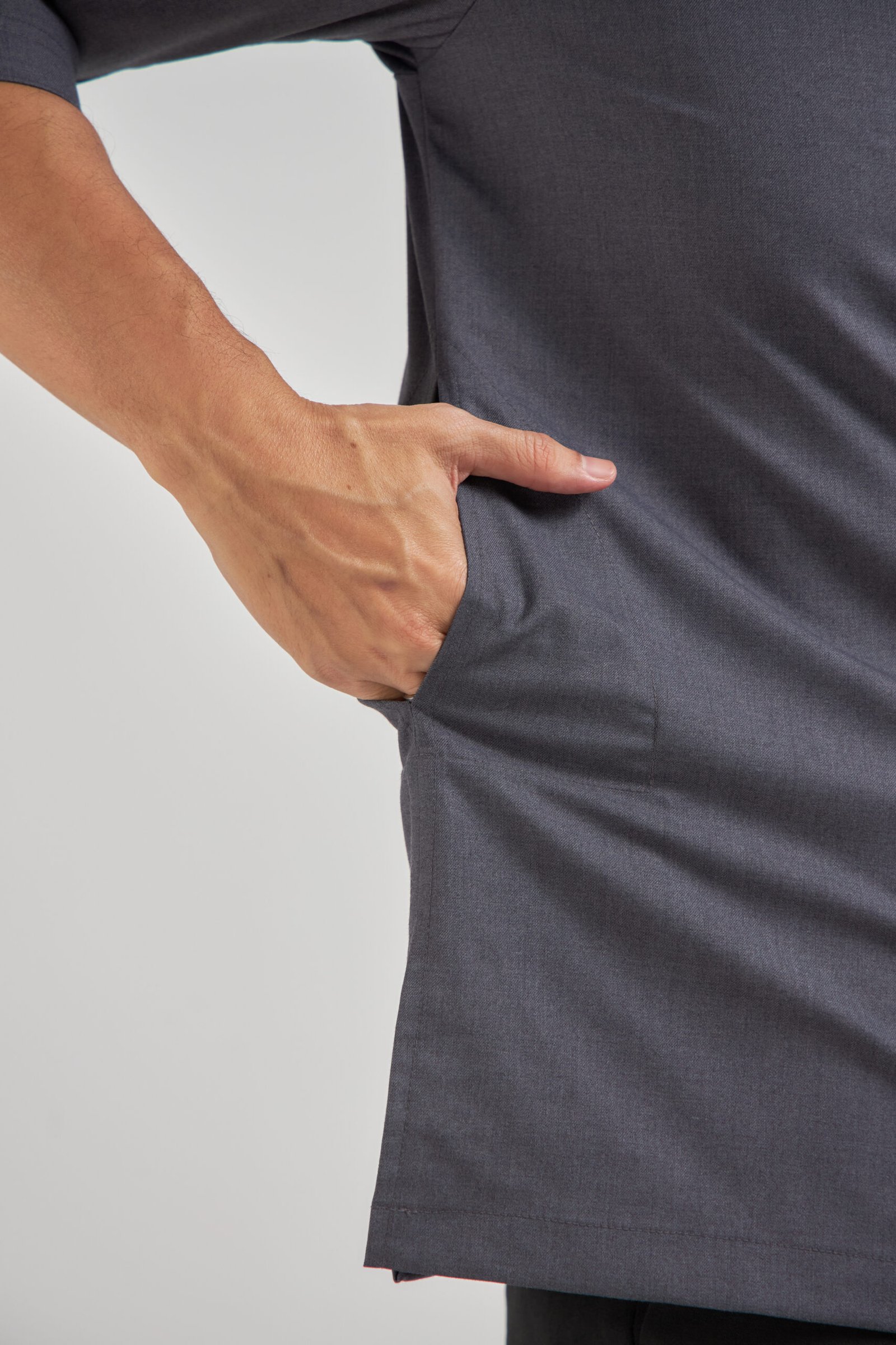 • Modern tailored fit with stylish three-quarter-length sleeves.